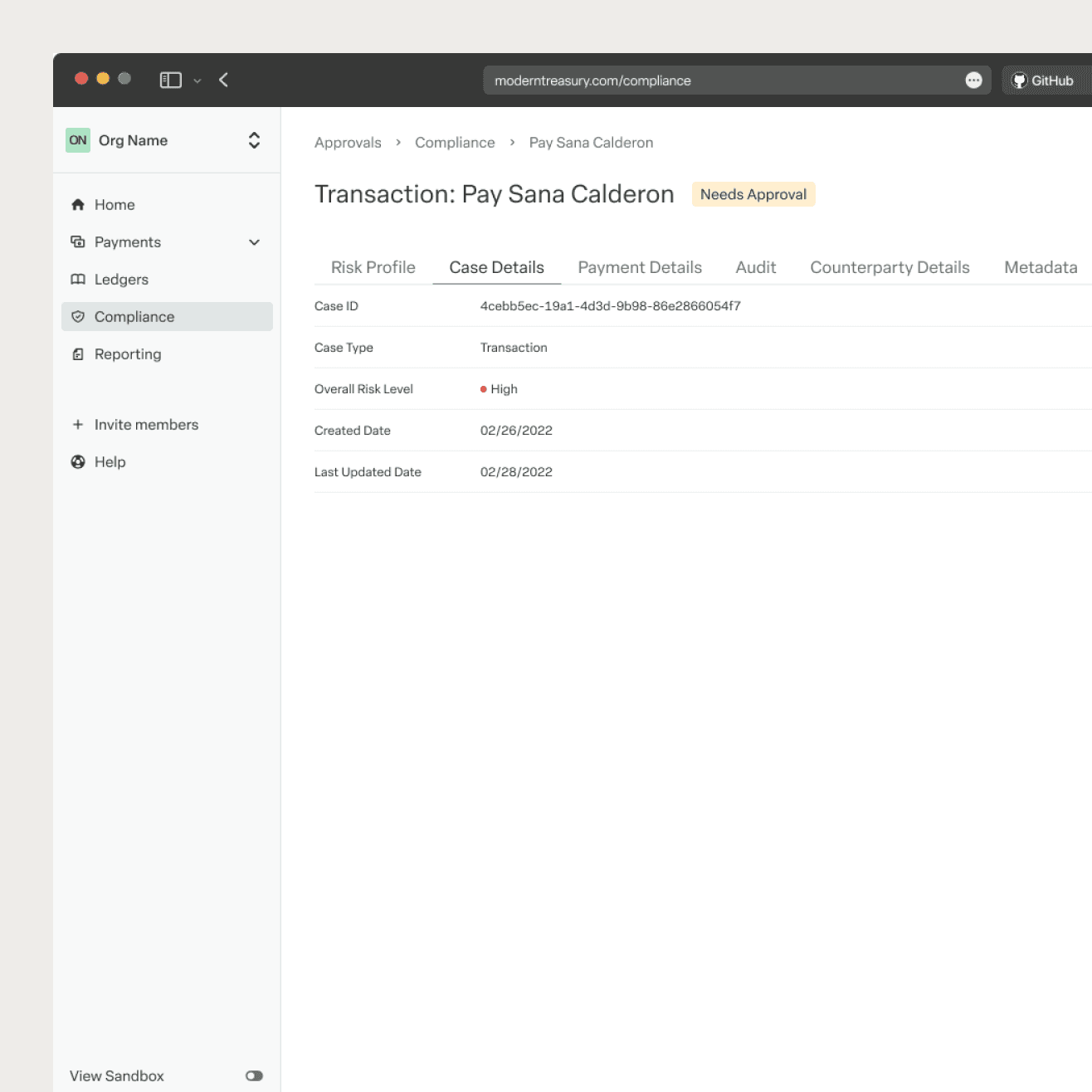 I led the design of a new compliance product line that enabled customer onboarding, case review and approval, and transaction monitoring directly within Modern Treasury.