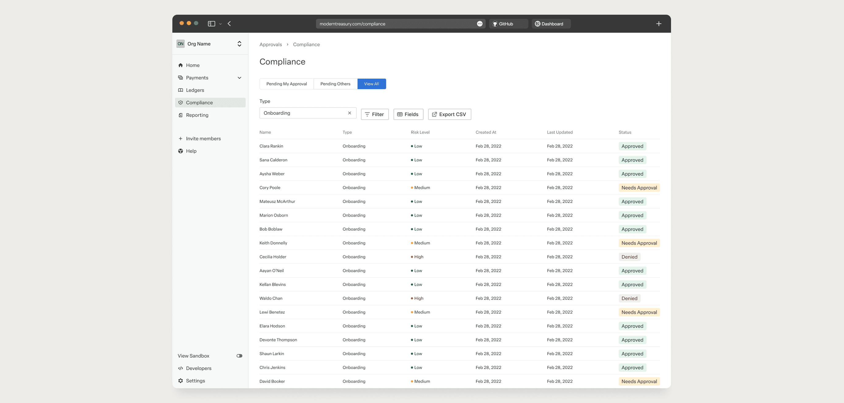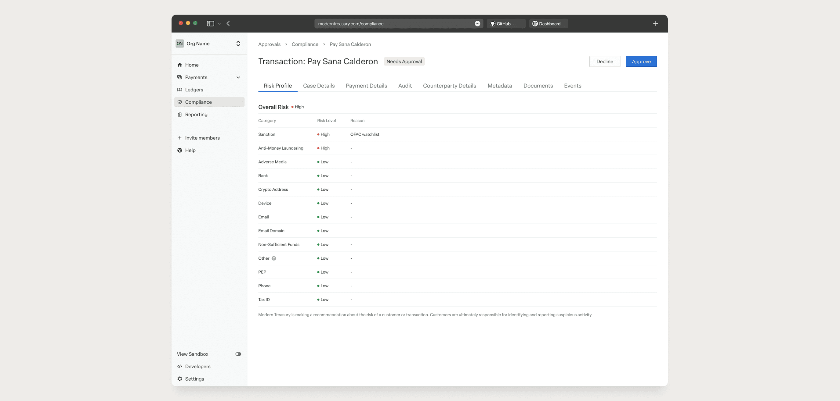 To support enterprise adoption, Modern Treasury needed a native compliance system that worked seamlessly with payments while meeting regulatory and operational requirements.